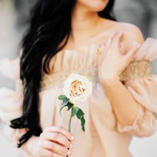 - свадебное платье в естественном и спокойном бежевом цвете подарит невесте ощущение гармонии и комфорта, а также подчеркнет природную красоту и выразительность черт лица. Более того, нейтральный пастельный тон не мешает расставить яркие акценты в свадебном образе;